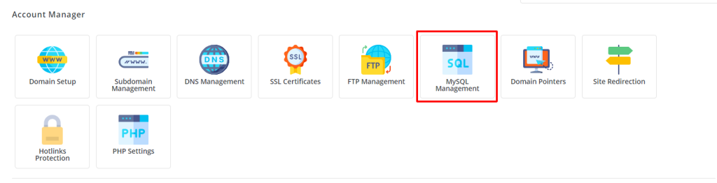 Click on MySQL Management in the Account Manager section