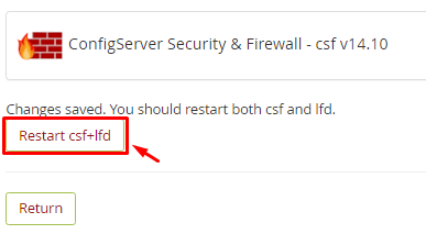 - To apply the changes, click on Restart CSF+LFD or just restart CSF.